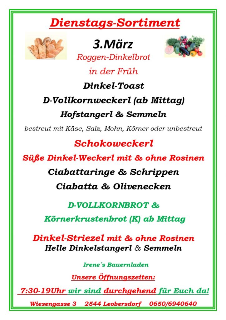 Sortiment, 3.März 2026