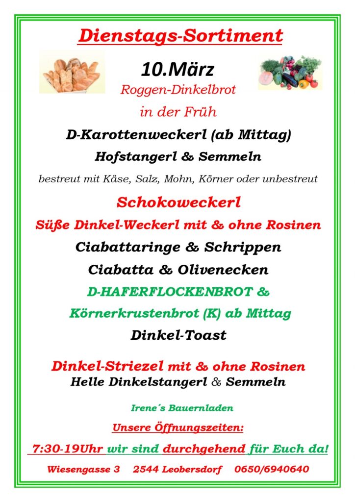 Sortiment, 10.März 2026