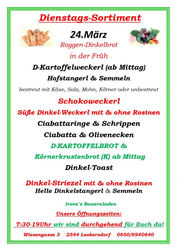 Sortiment, 24. März 2026