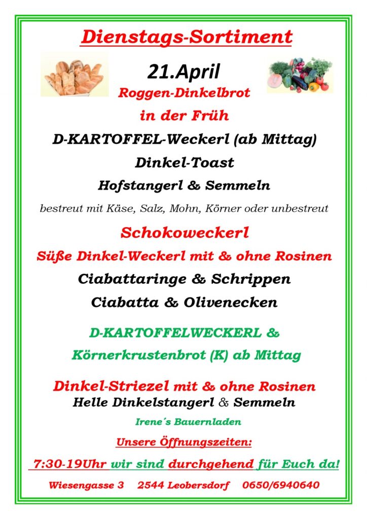 Sortiment, 14.April 2026